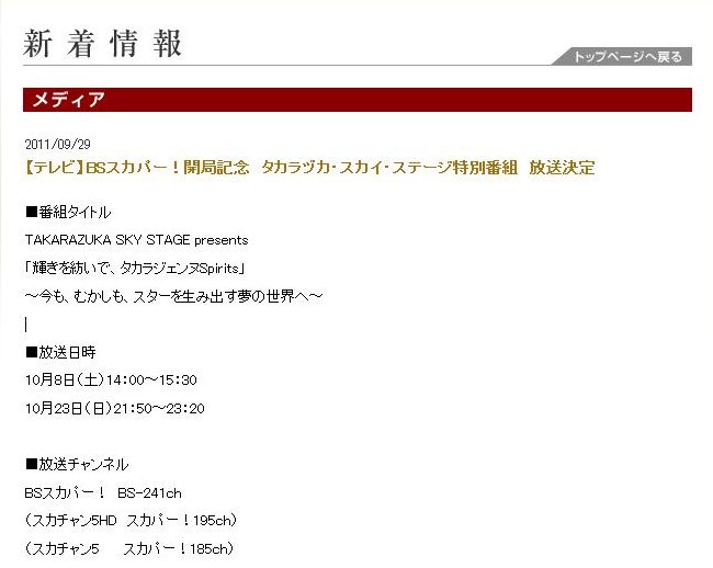 そして宝塚の特番は10月8日(土)14時からです