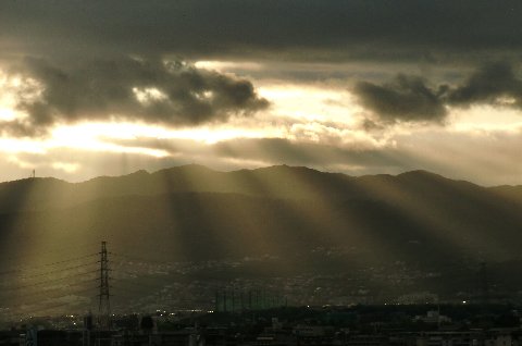 いや・・天使のはしごはもっと明るい時間だったかな